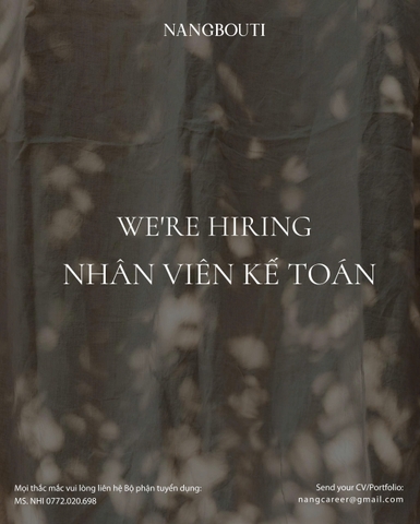 🌿 Cơ hội dành cho bạn kế toán muốn làm việc trong môi trường trẻ - có gu - ổn định - phát triển lâu dài cùng Nangbouti 🌿