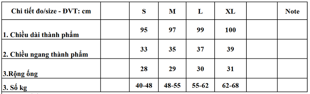 - Rộng ống : 31cm
